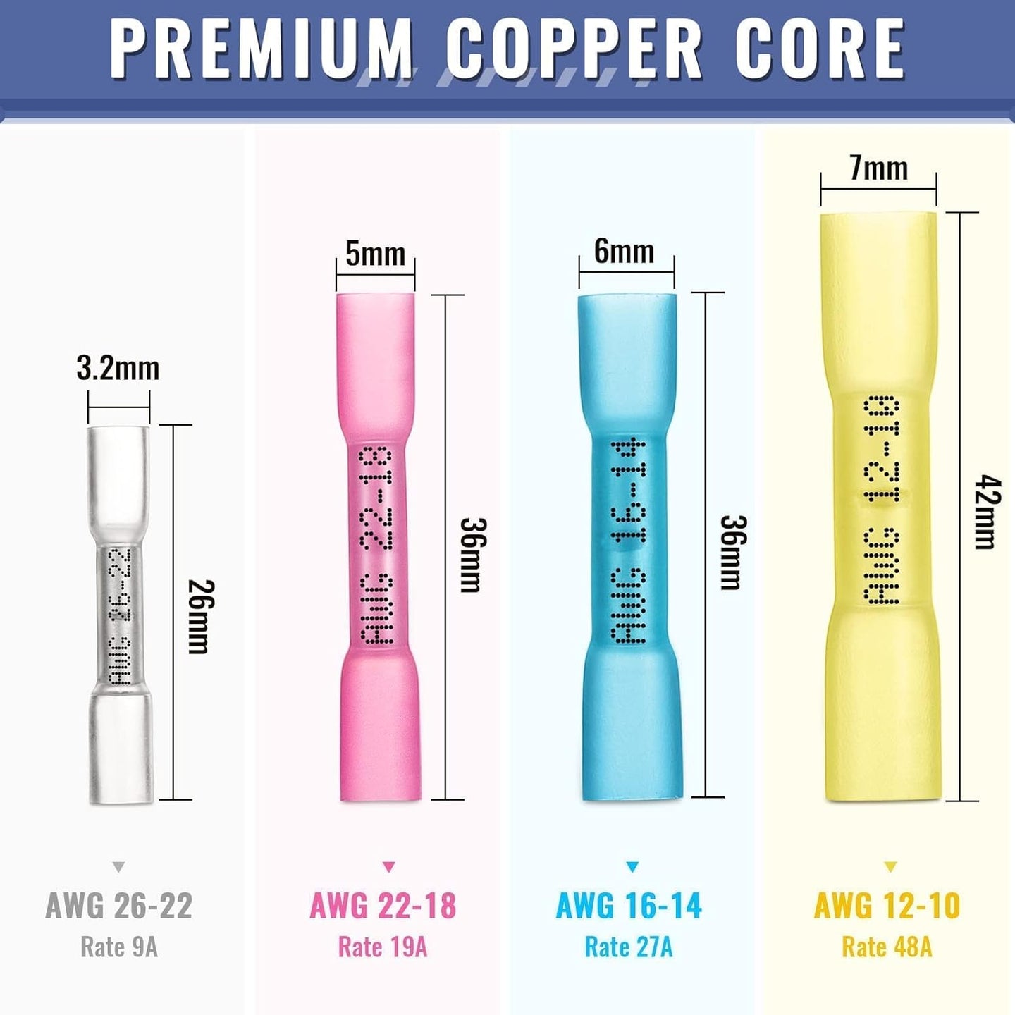 - Type: Butt Connector (end-to-end splice) with heatshrink insulation.